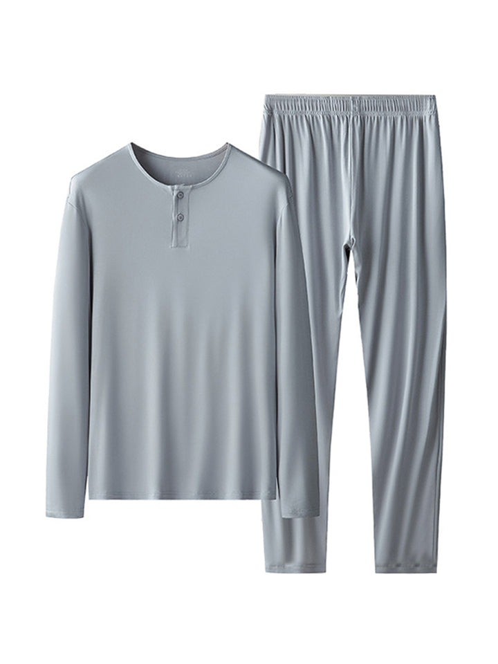 60S Modal Herrens Ensfarvede Pyjamasæt | Bekvem casual tøj til alle årstider