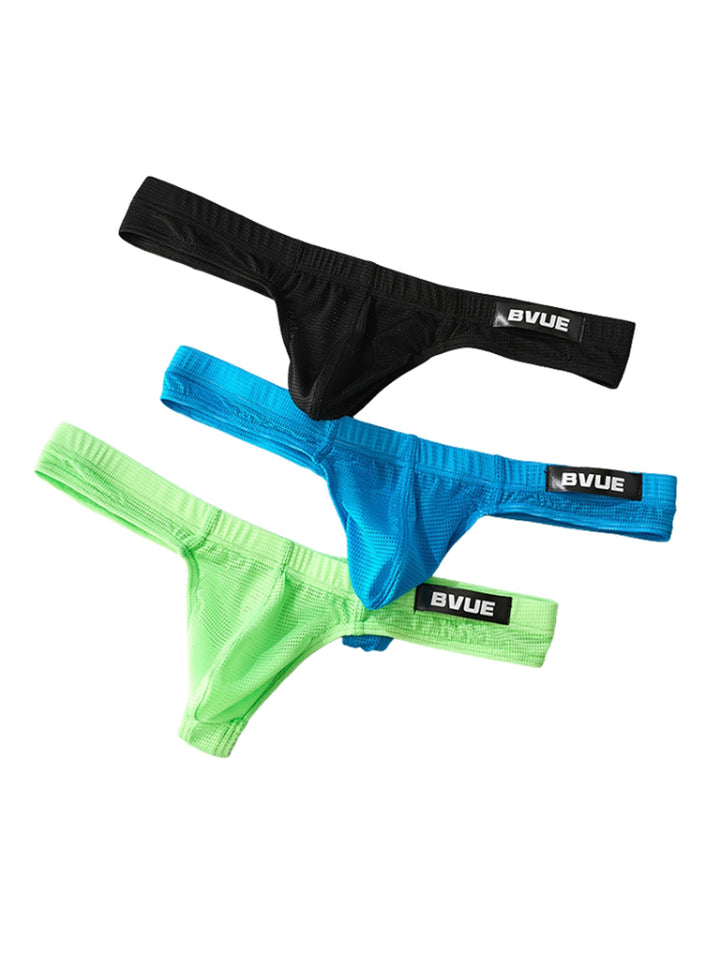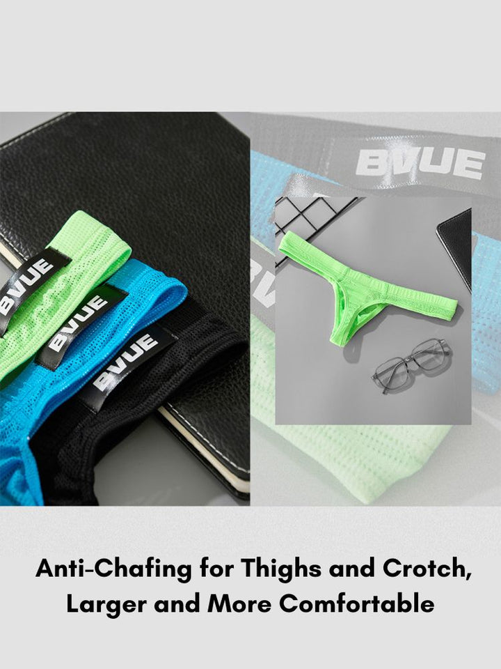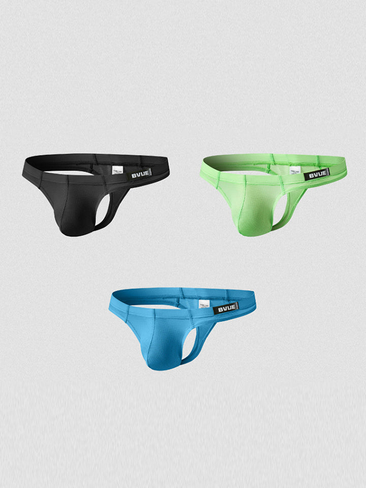 2 Pack Men's Sexy U-Pouch Sheer Icy Silk Seamless Comfort Firm Support Thongs