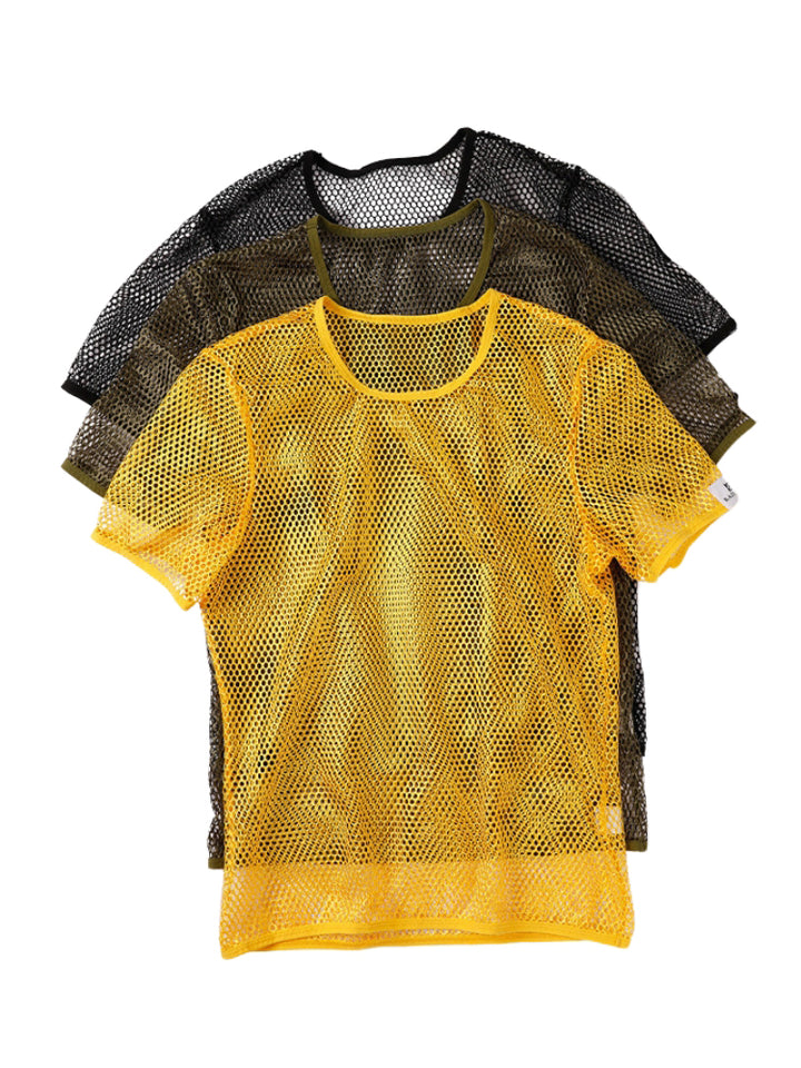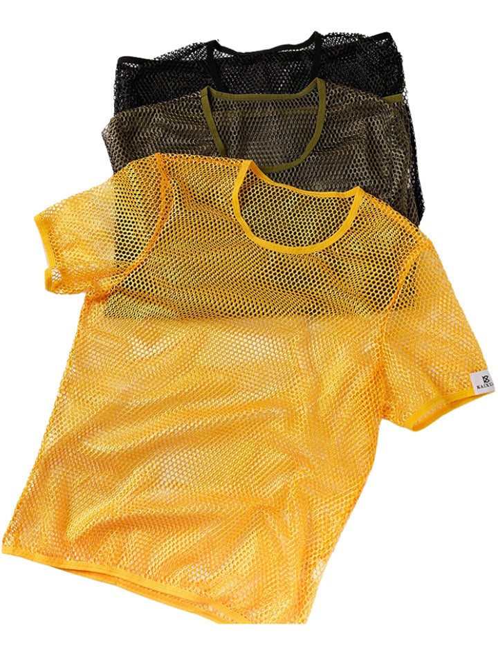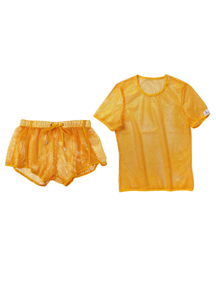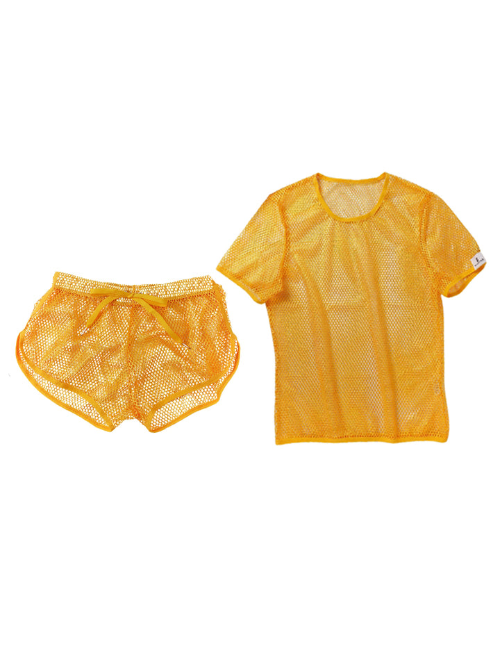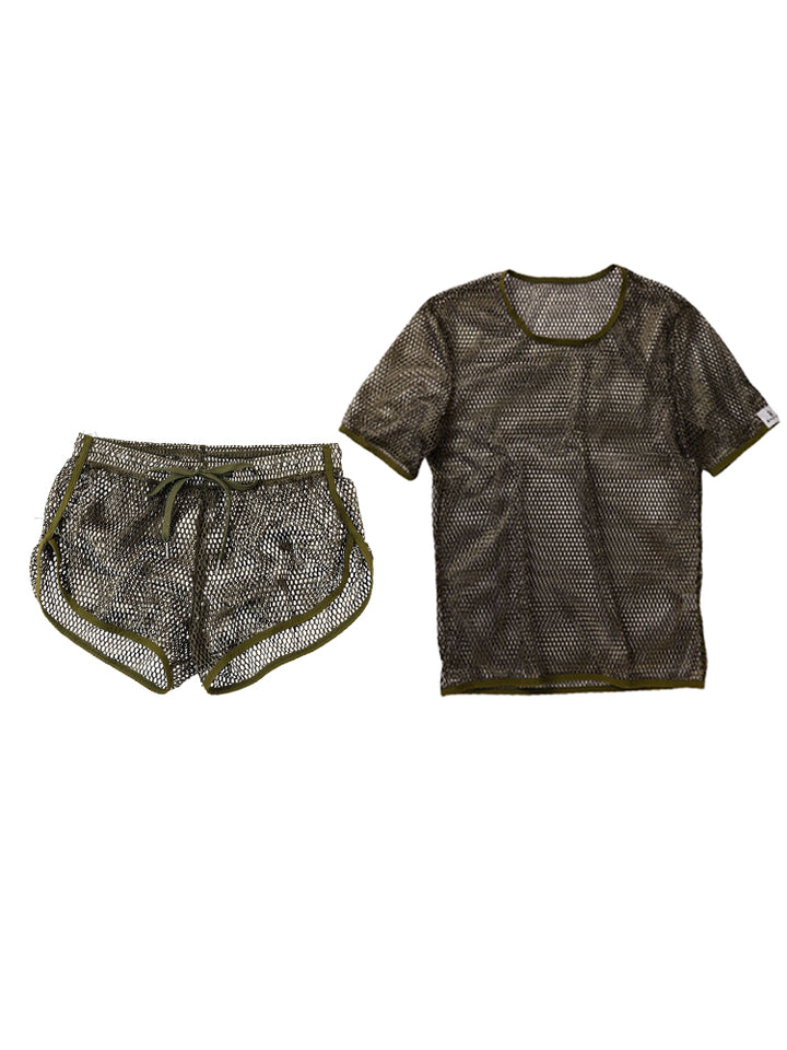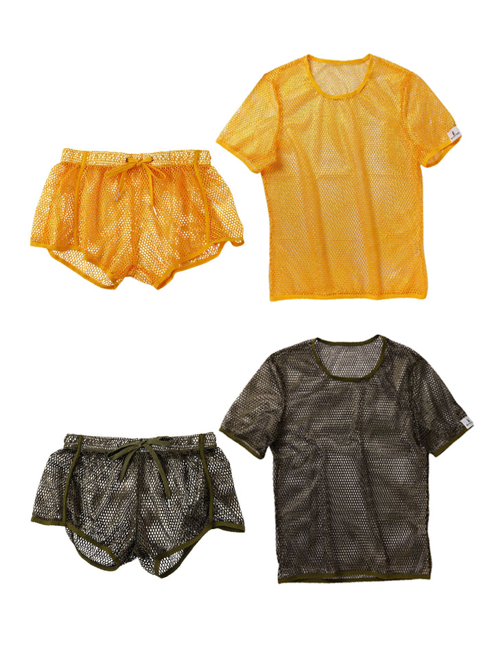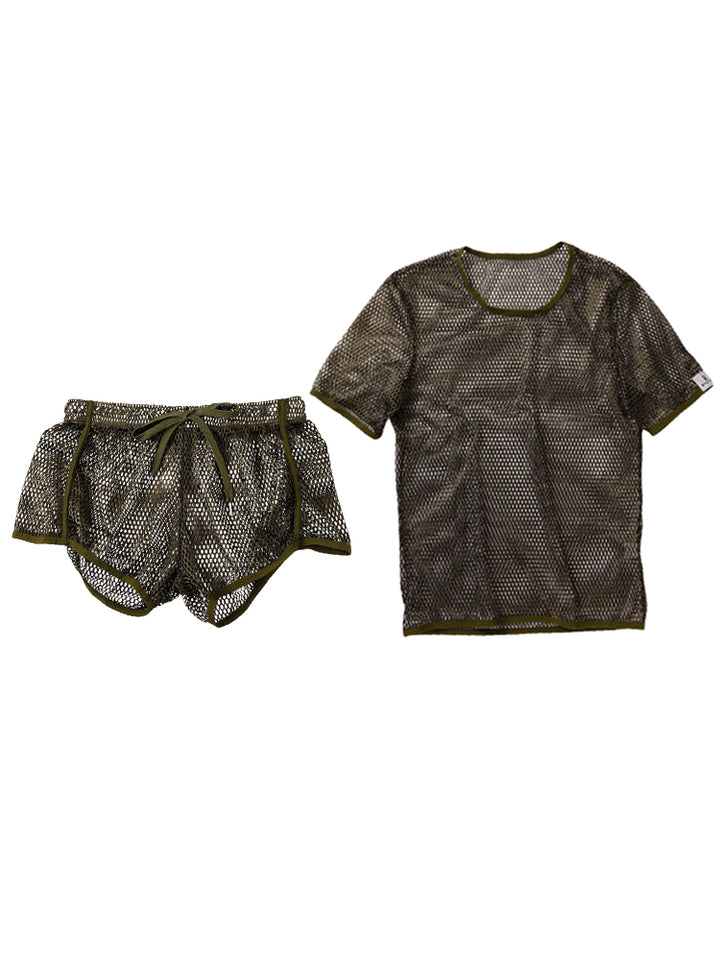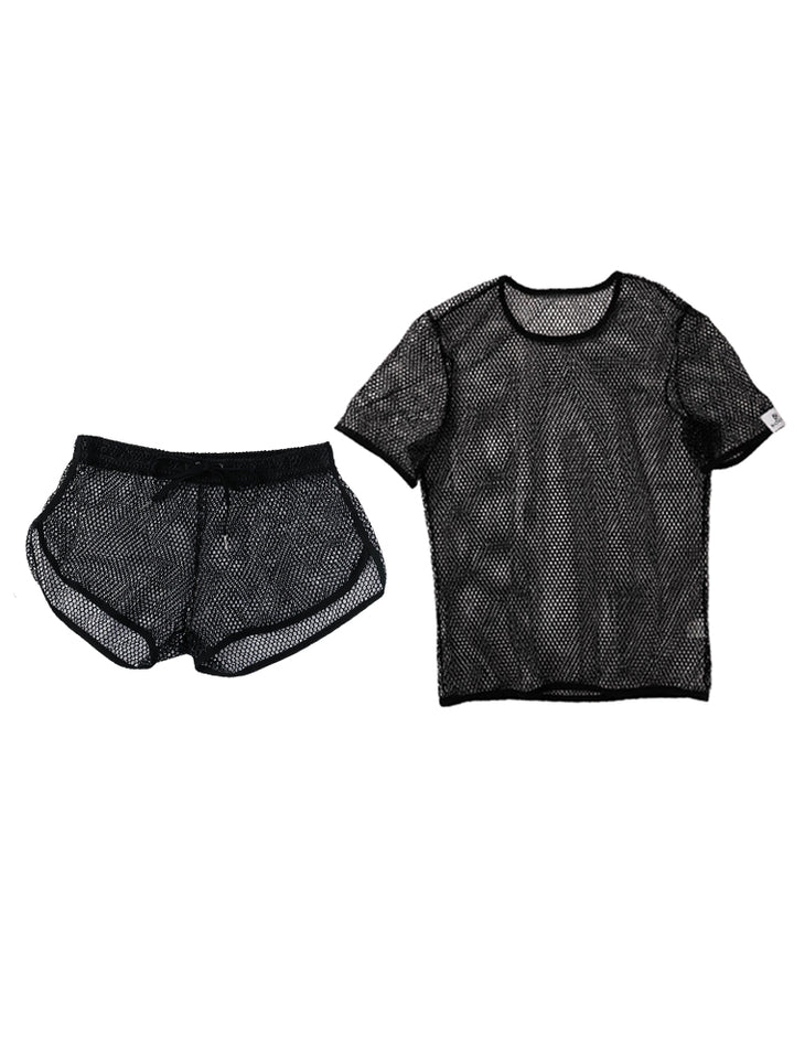 2 Pack Men's Breathable See-Through Hollow Design Loose-Fit Activewear Tops & Shorts