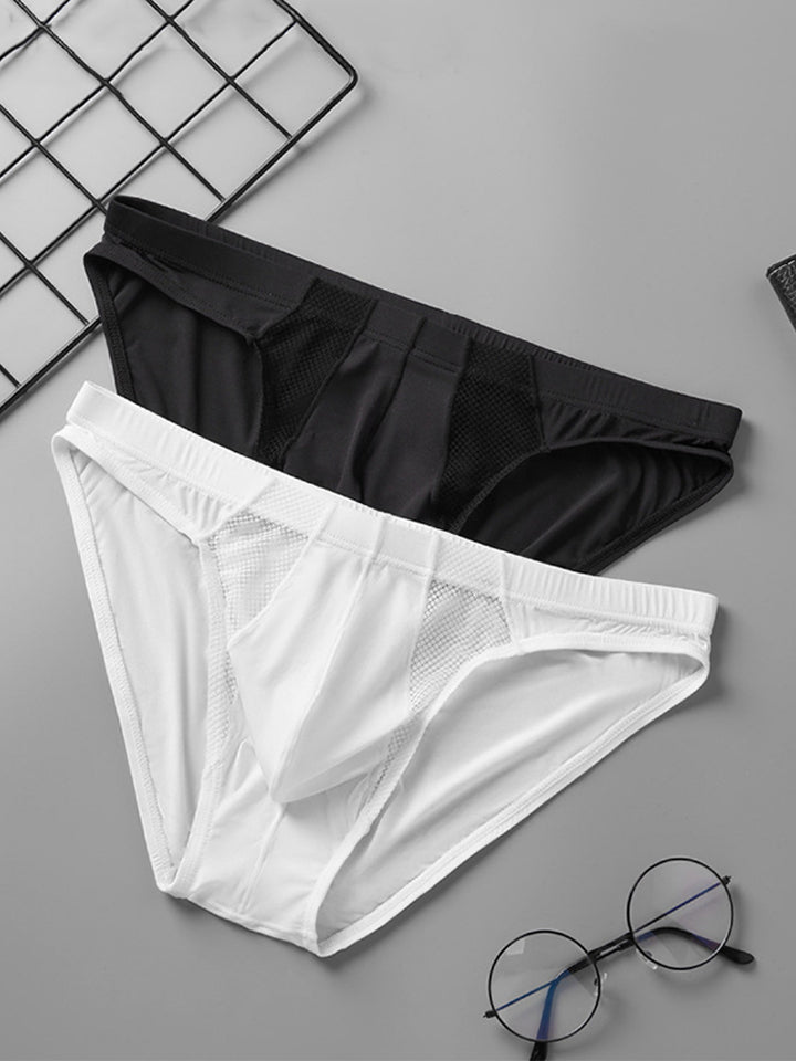 2 Pack Men's Sheer Mesh Low-Rise Sexy Ice Silk Briefs
