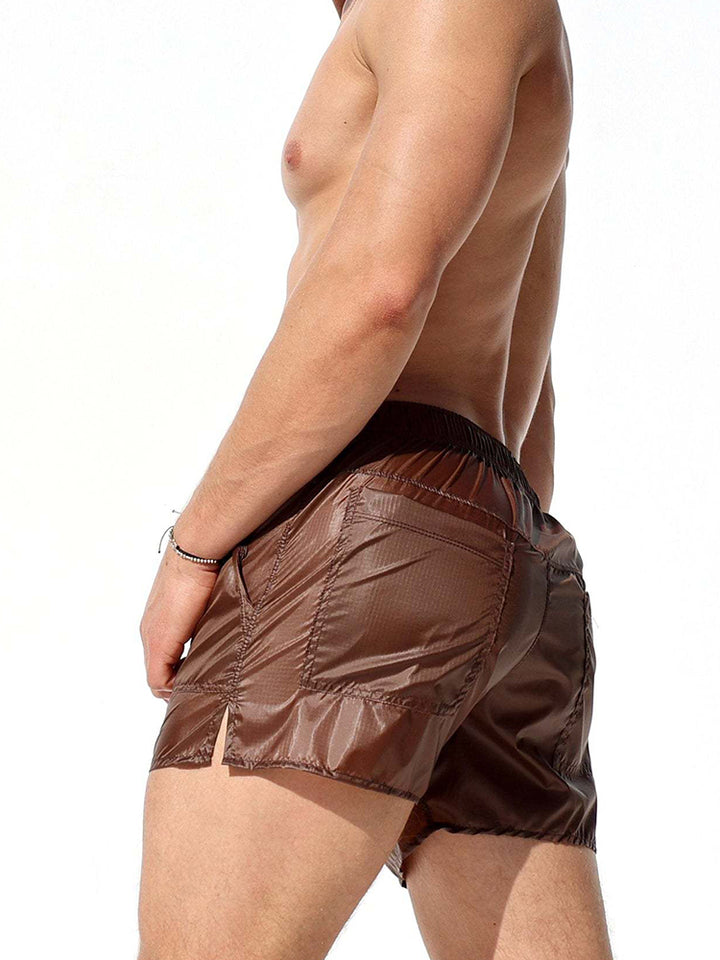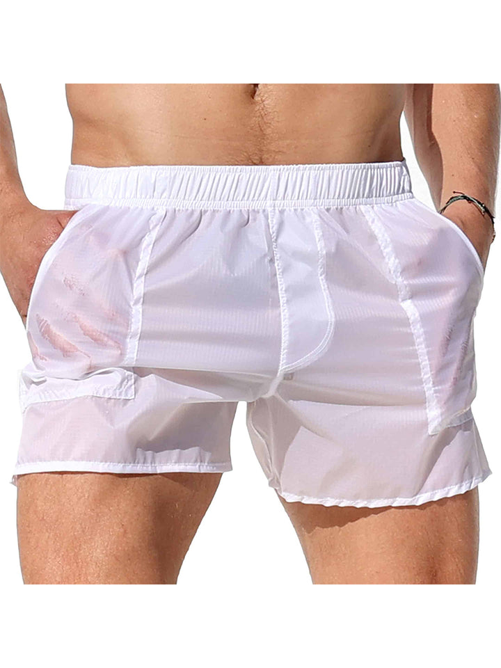 Miesten vuoramattomat läpikuultavat seksikkäät rantashortsit