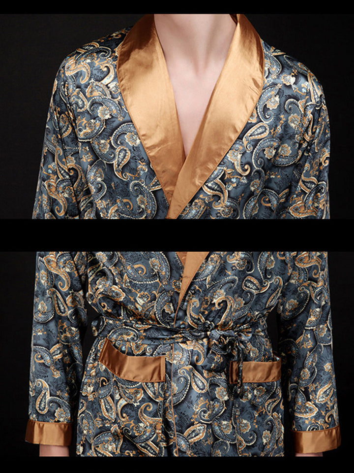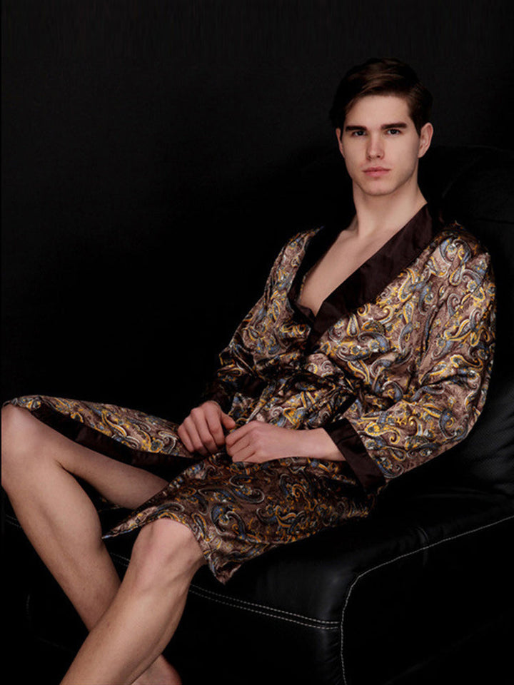 Marangyang Satin Printed Robe ng Lalaki