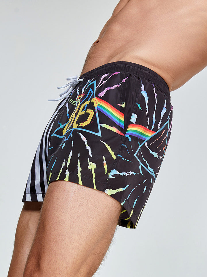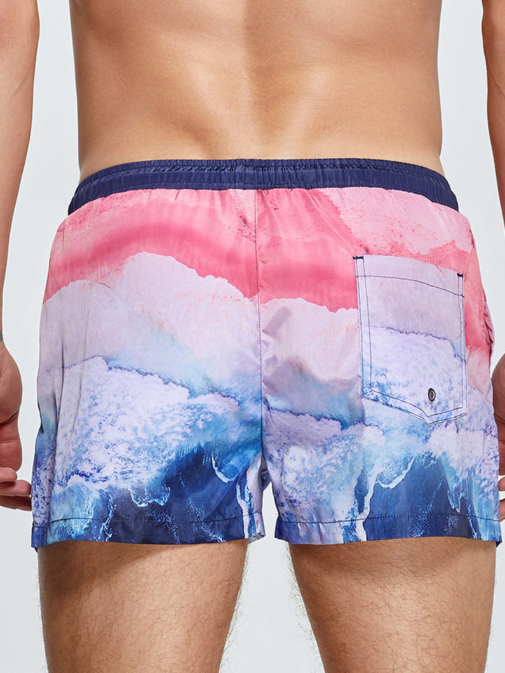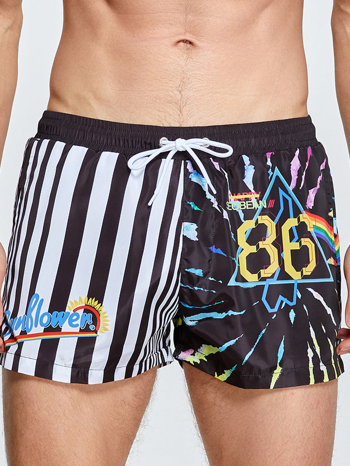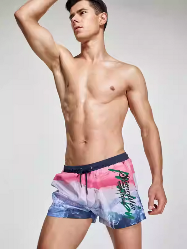 Męskie drukowane spodenki surfingowe z szybkoschnącego materiału, sportowym krojem i wygodnym paskiem