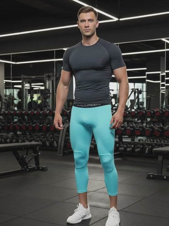 Men's High-Elasticity Impact Protection Hex Knee Guard Activewear Tights